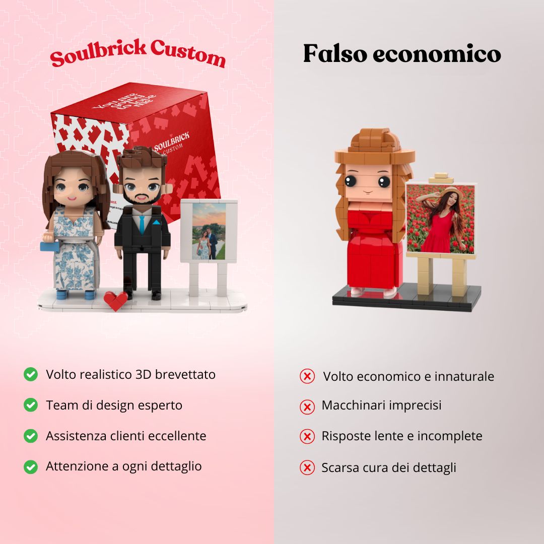 Aggiorna il tuo ordine di mattoncini personalizzati per includere 3 figure anziché 2. Questa opzione ti consente di catturare più ricordi nella tua creazione personalizzata. Una volta completato il pagamento, rispondi alla nostra e-mail con la conferma dell'ordine per procedere con l'aggiornamento.